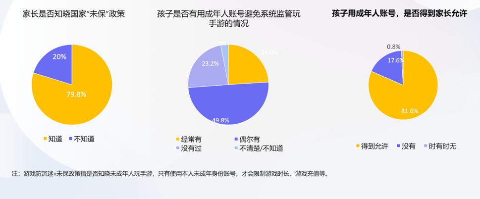 但每日经济新闻发布的《未成年人游戏防沉迷现状调研报告(2024)》却显示,绝大部分家长知道防沉迷未成年人保护政策。另一方面,家长普遍有帮助孩子绕开平台防沉迷监管的情况。